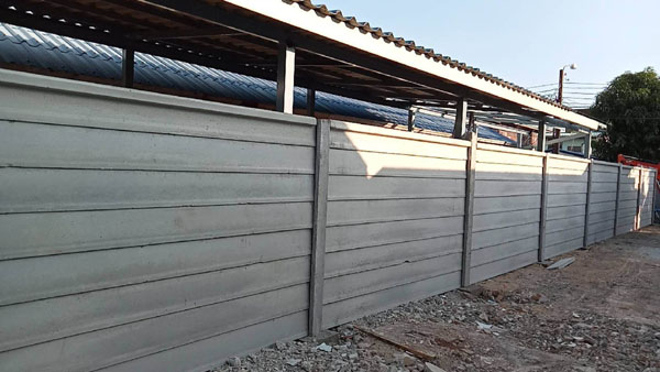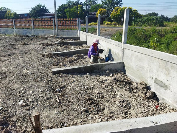 - ก่อสร้าง ขุดร่อง/ตอกเสาเข็ม • เทฐานราก-คาน-เสา-แผงรั้ว • ฉาบ/กันซึม/เก็บรายละเอียด